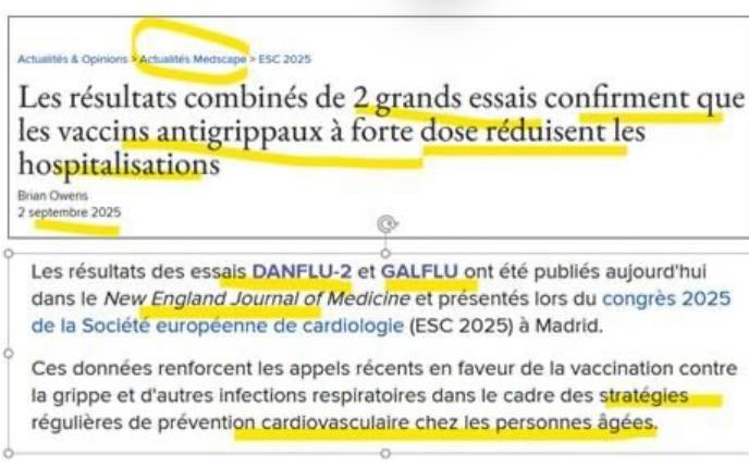 Les autorités et les experts (de nationalités variées) nous annoncent qu’il est urgent en cet automne 2025 de se vacciner contre la grippe, surtout les séniors qui sont, comme chacun sait, à très haut risque de mourir de la grippe.