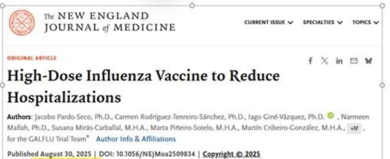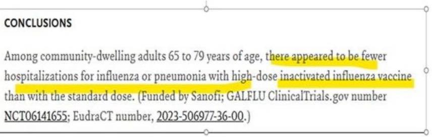 Conclusion en français : l’étude est complètement négative ! Les vaccins hautement dosés ne sont pas plus efficaces que leurs prédécesseurs qui eux-mêmes ne l’étaient pas.