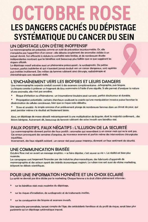 Mais je ne me laisse pas berner par cette douce couleur rose. Derrière les rubans, les affiches et slogans, il y a la réalité de l’arnaque dont peu osent parler : le gigantesque business des laboratoires et de l’industrie médicale.