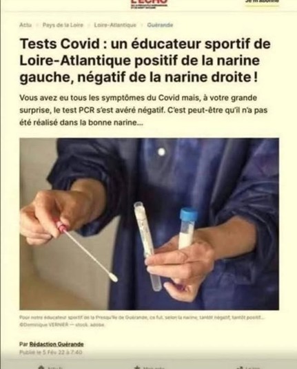 Il faut savoir que la personne qui a inventé ces tests peu avant la plandémie a bien dit qu’ils étaient destinés à autre chose, a répété plusieurs fois qu’ils n’étaient pas fait pour ça et que ce n’était pas fiable ! Il l’a sans doute répété un peu trop, peu de temps après il est mort.